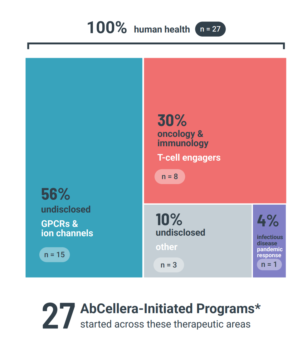 Estos dos conceptos que veremos a continuación son la clave para entender por qué AbCellera se considera una empresa de vanguardia y cuál es su ventaja competitiva a largo plazo. Representan dos de las áreas más difíciles y, a la vez, más valiosas de la biotecnología moderna. A continuación hablaremos de los T-cell Engagers y los GPCR y Canales Iónicos. Ambas capacidades han permitido desarrollar a AbCellera un total de 27 programas propios, y podríamos considerarlos los “activos intangibles” a partir de los cuales generar nuevas soluciones.