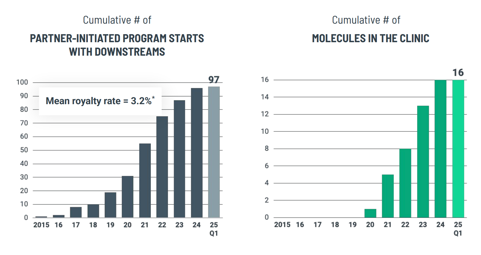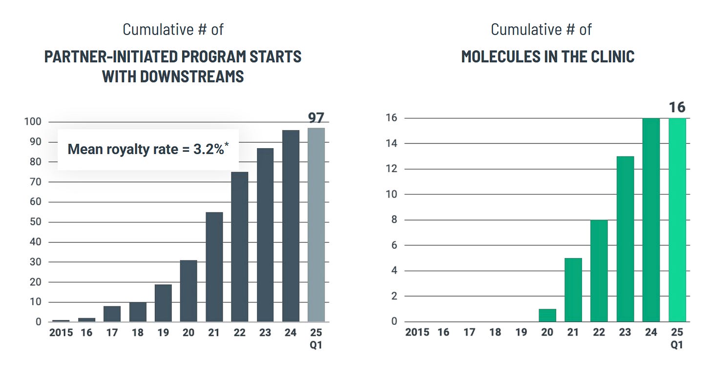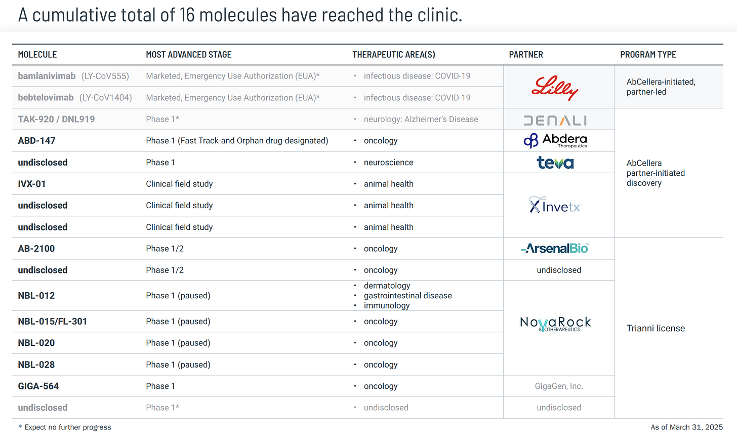 En la primera parte hablamos del total de programas iniciados tanto por AbCellera como por ésta en unión a sus partners. Otro KPI importante para la compañía es el de las molecules in the clinic o las moléculas en laboratorio.