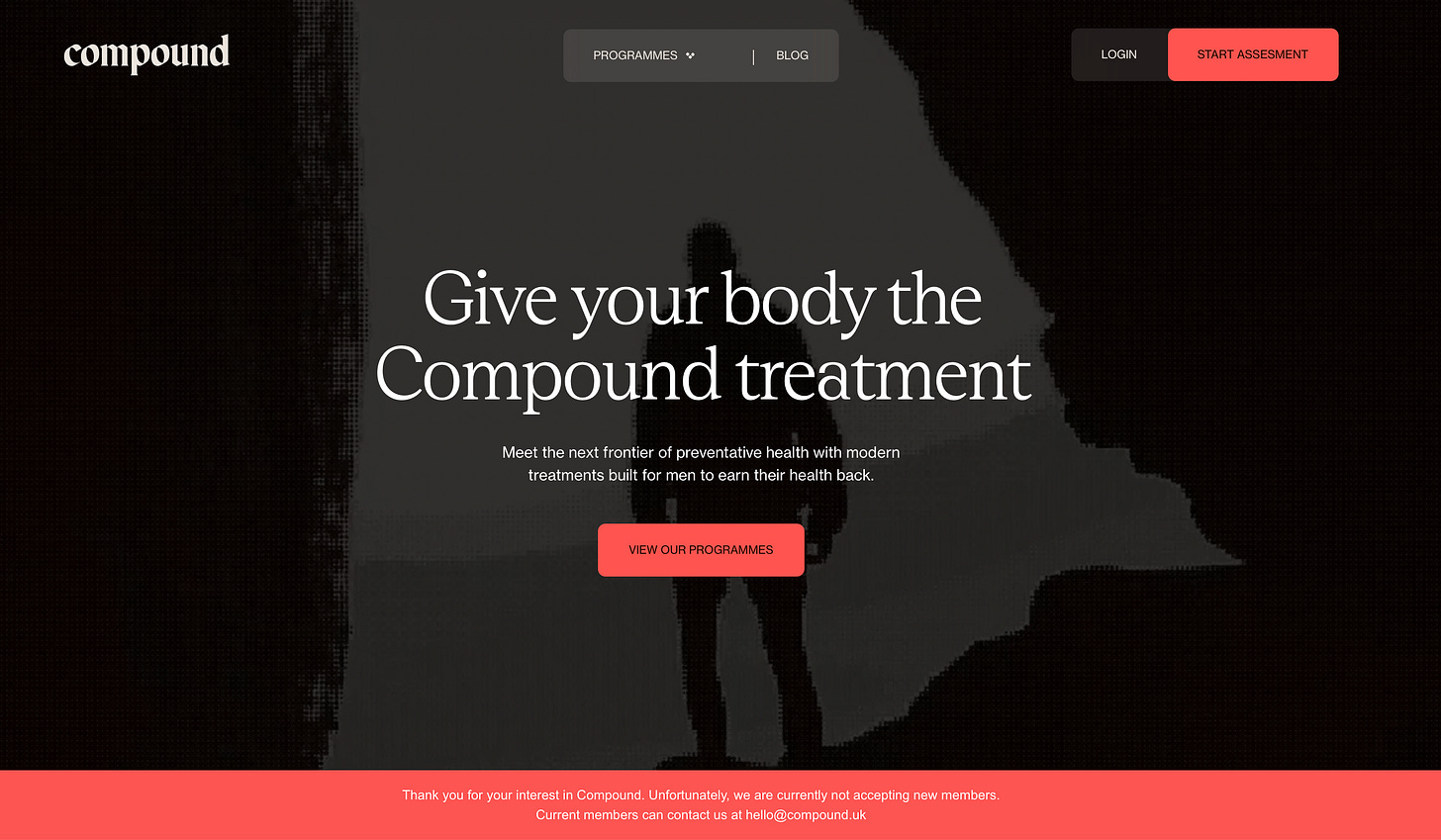 Compound: Salud masculina preventiva y alto rendimiento. El más experimental, relanzado en UK en 2025. Mezcla de entrenamiento, GLP-1, dieta y hormonal.