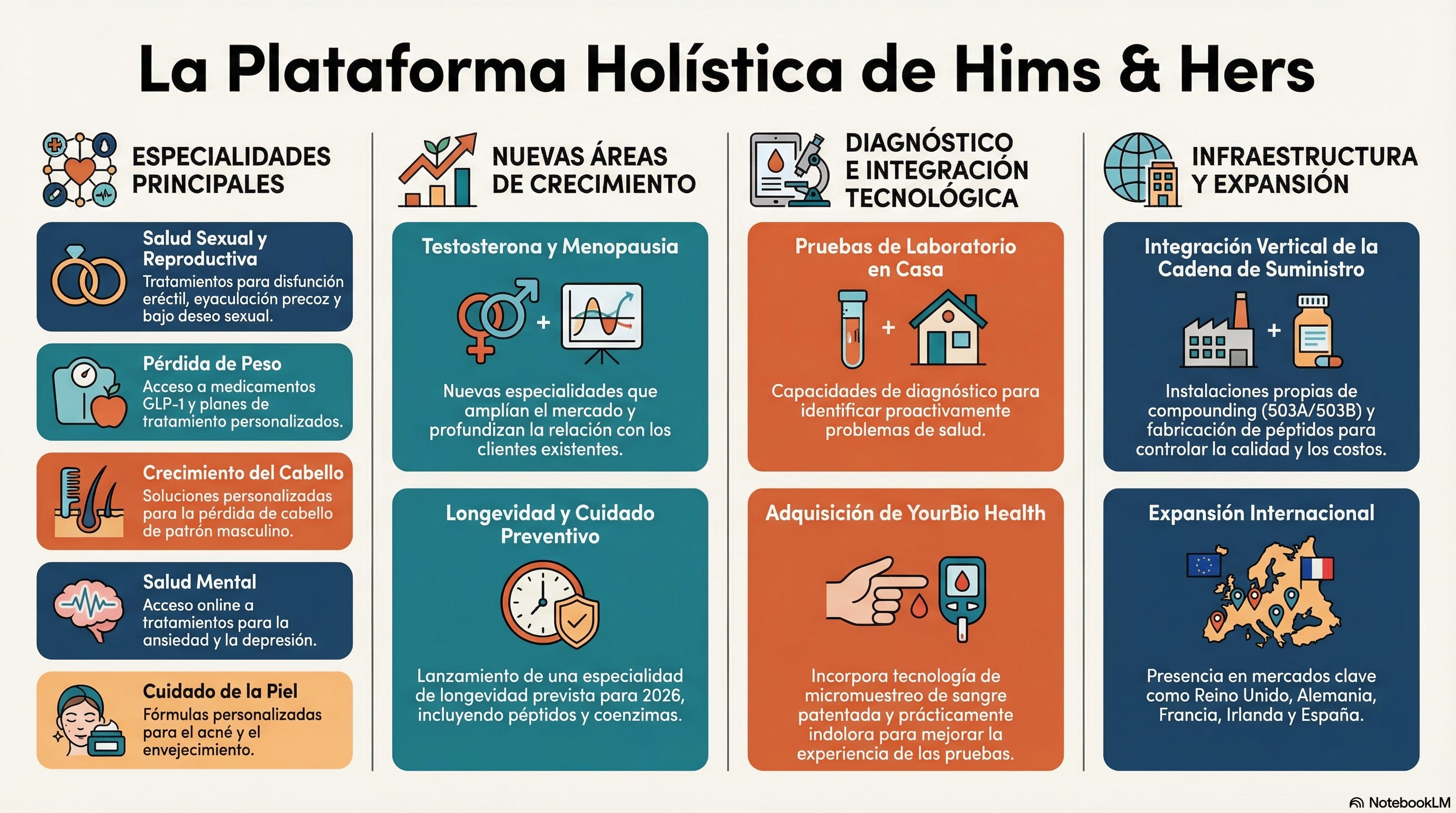 Aquí radica el foso económico o moat que estamos empezando a identificar en Hims: su base masiva de usuarios. Esta escala no solo asegura el crecimiento, sino que también le otorga una ventaja de negociación y adquisición para seguir integrando servicios y tecnologías complementarias bajo condiciones ventajosas. Esto consolida su oferta integral y la hace día a día más robusta.