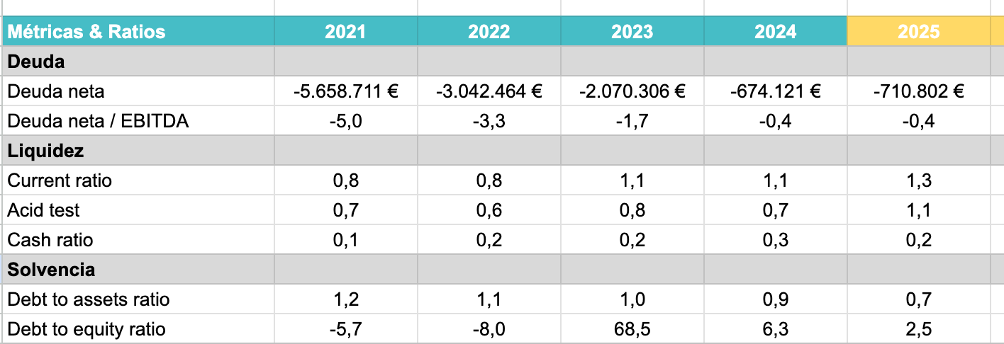 Es cierto que ya se intuían ciertos brotes verdes, especialmente tras varios ejercicios de buena ejecución. Destacaba sobre todo la gestión de la deuda, que permitió pasar de una situación de equity negativo a una posición de relativa solvencia, como refleja con claridad el modelo que desde hoy puede consultarse.