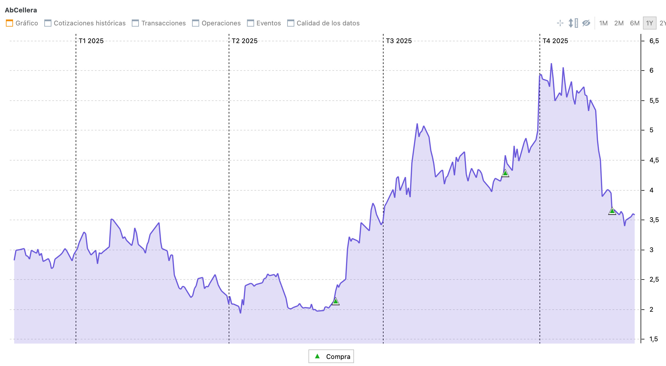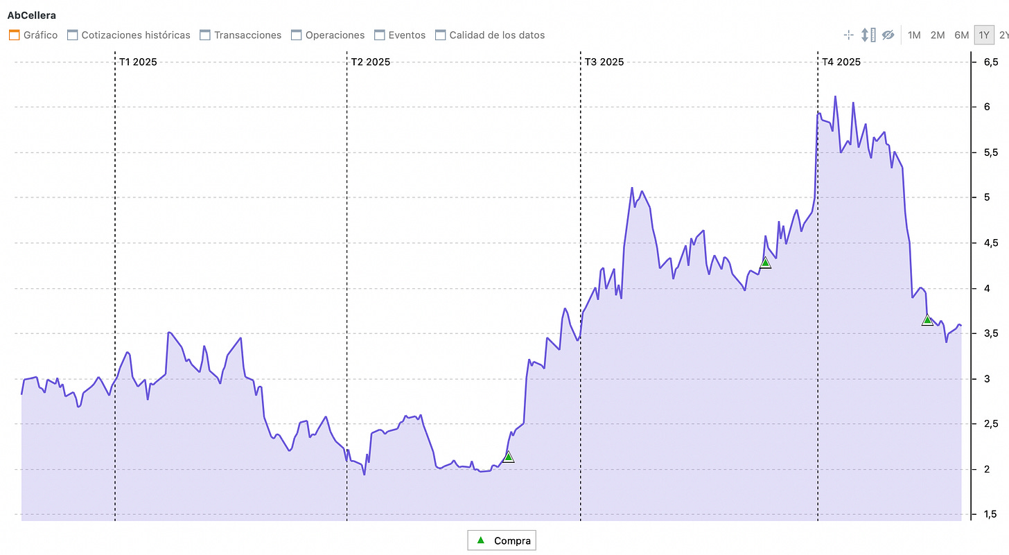 Otro de los valores en los que he aumentado mínimamente es en AbCellera. Esta decisión se debe básicamente al valor empresarial que considero para la compañía.