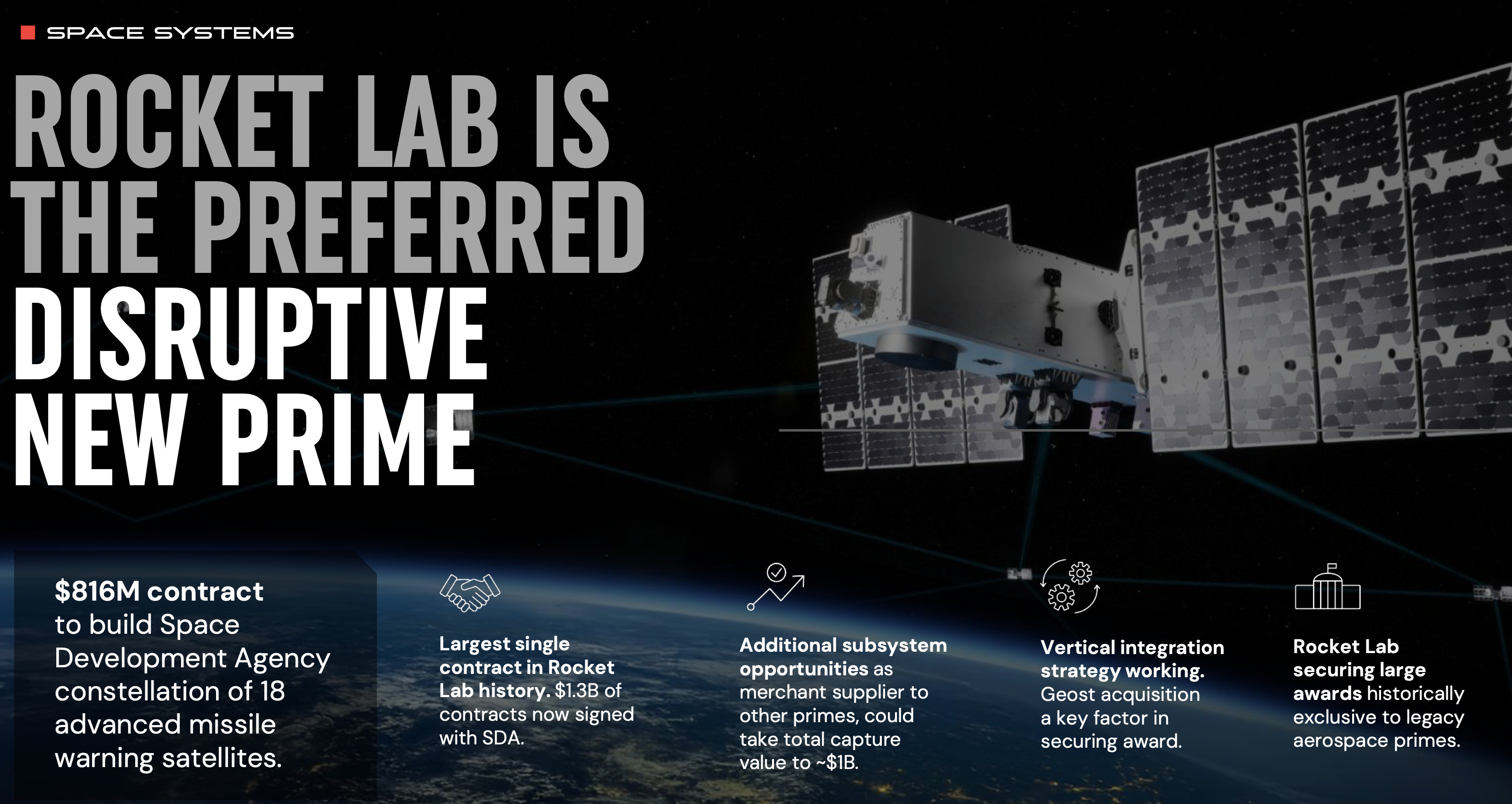 El acuerdo de $816m con la Space Development Agency para 18 satélites de la capa de seguimiento del PWSA es el mayor contrato individual en la historia de Rocket Lab y lleva la relación acumulada con SDA a $1,3B.