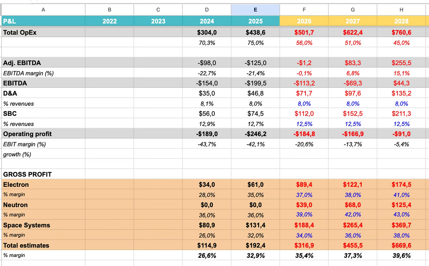 Con la diferencia de que en mi modelo el margen bruto del 40% no se conseguía hasta 2028. Según lo que comentaba el CFO, podría alcanzarse a final de 2026 incluso. Muy buena noticia.