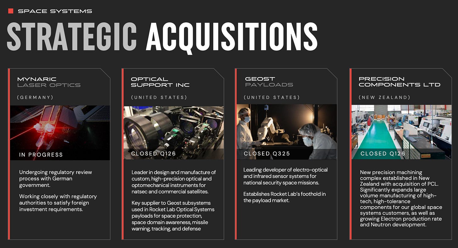 Más allá de la estrategia a largo plazo, las tres adquisiciones cerradas en el período reciente tienen un impacto directo y concreto sobre el modelo financiero a corto plazo. El CFO fue explícito en la call al señalar que la dependencia de proveedores externos de terminales ópticos fue uno de los factores que generó cierto deslizamiento en el reconocimiento de ingresos de Space Systems en Q4. Optical Support Inc., cerrada en Q1 2026, es directamente la respuesta a ese problema: al integrar en casa la fabricación de instrumentos ópticos de precisión, Rocket Lab reduce su exposición a retrasos de subcontratistas que bloquean el reconocimiento de milestones y, por tanto, de ingresos.