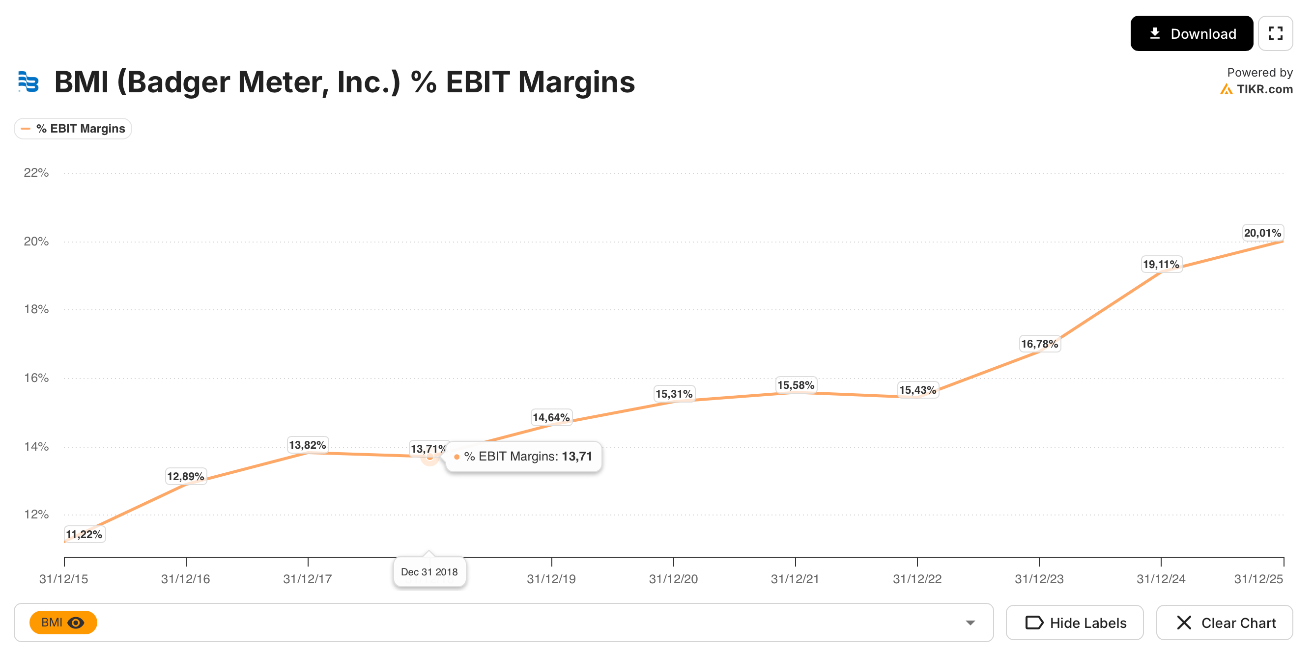 La evolución de los márgenes es la prueba empírica de que esta transición no es solo narrativa, sino económica. Badger Meter ha pasado de operar como una industrial de márgenes medios a consolidar márgenes operativos en torno al 20 %, con tendencia estructural al alza. Este avance no se explica por eficiencia coyuntural ni por ciclos favorables, sino por una mejora sostenida del mix y por el apalancamiento operativo inherente al software.