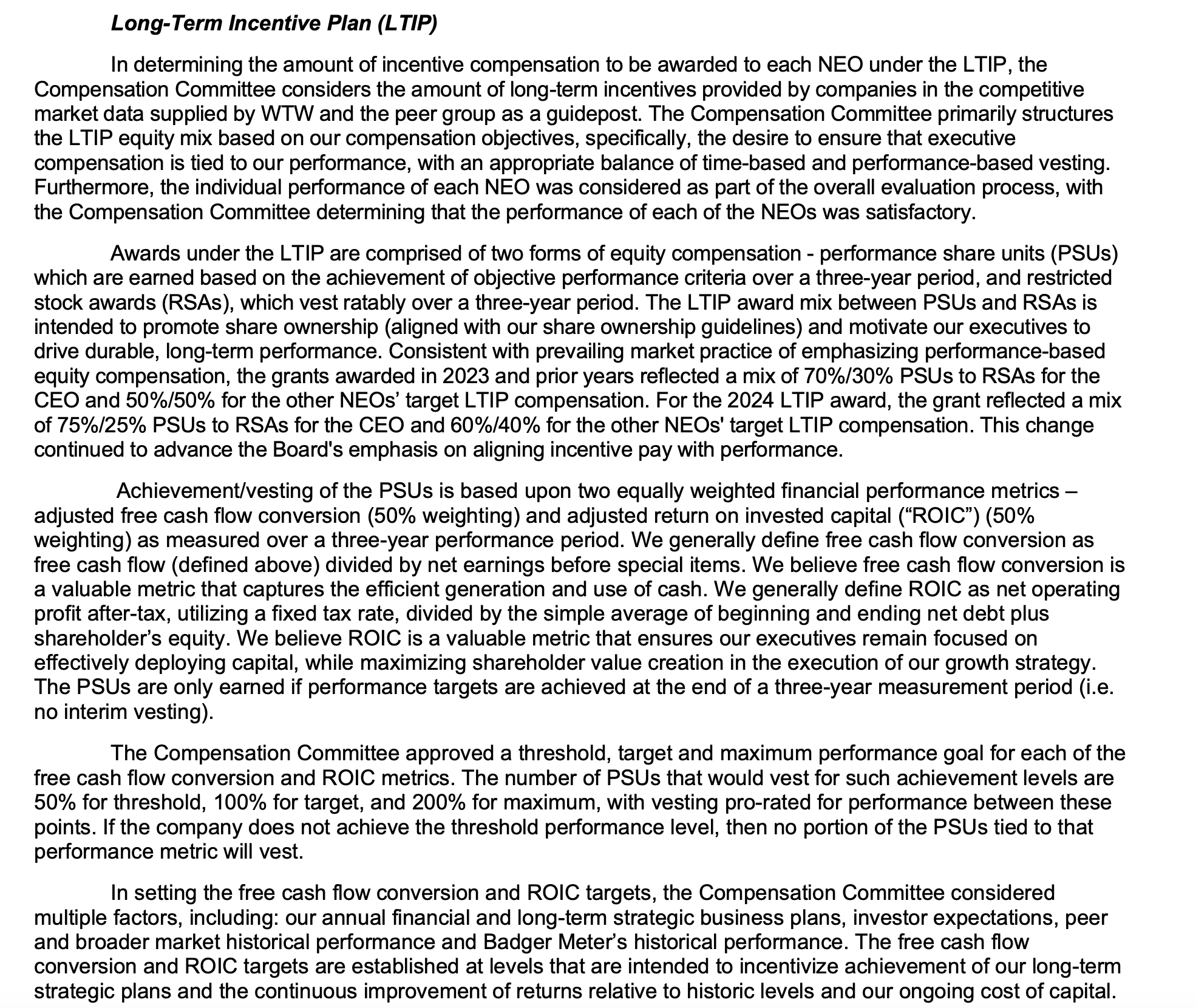 En la práctica, el equipo directivo solo captura una parte significativa del upside si el accionista también lo hace, lo que refuerza el carácter compuesto y disciplinado del modelo de Badger Meter.
