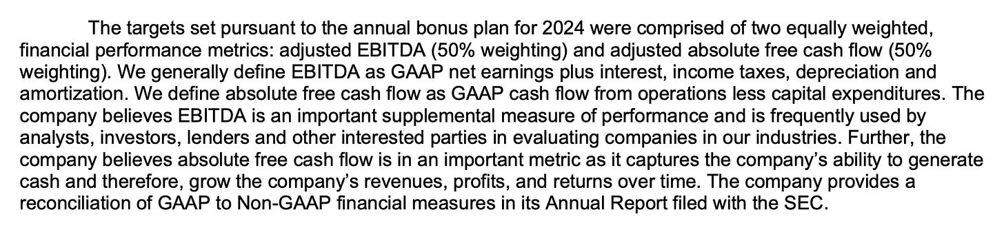 Bockhorst dispone de unas 98.100 acciones según el Proxy de final de 2024, que a precios actuales, supone un capital total de 14,3 millones de dólares invertidos en la compañía. Esta alineación no es para nada mala teniendo en cuenta que en salario+bonus gana unos 5 millones al año, y gran parte de esta cantidad está restringida al buen comportamiento del negocio, como veremos a continuación.