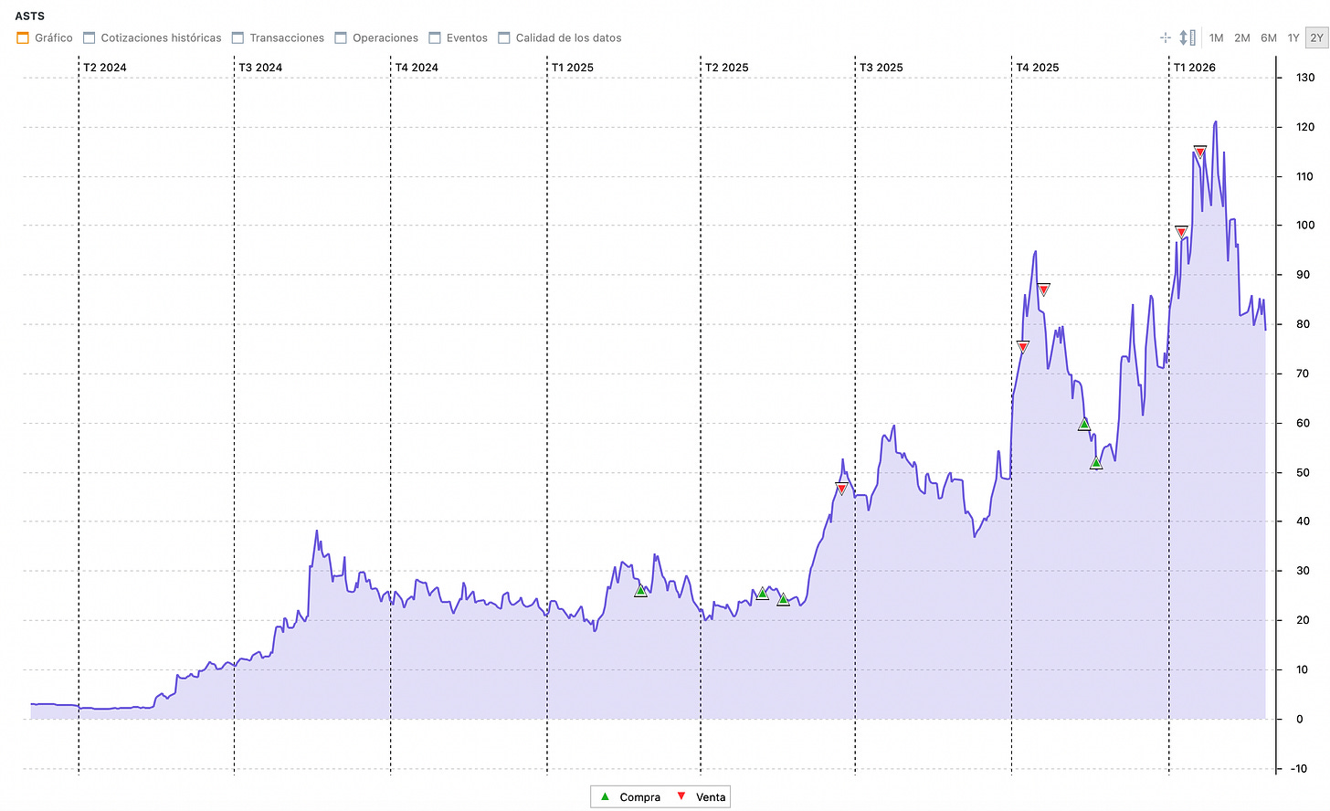 Sesgo de recencia: Después de tres meses de subidas, tu cerebro extrapola: “seguirá subiendo”. Después de una corrección, extrapola: “seguirá cayendo”. Ninguno de los dos es análisis, es simplemente ruido cognitivo. Por eso tienes que entender tus inversiones, ponerles un precio o valor intrínseco y aprovechar los miedos y euforias de mercado (recorte, ampliación) En este punto me gustaría dejar visualmente plasmado los enormes retornos que nos hemos llevado en valores como ASTS 0.00%↑ o RKLB 0.00%↑ simplemente aplicando esta base. Incluso en SOFI 0.00%↑ , que confió sea ejemplo de nuevo en el futuro.