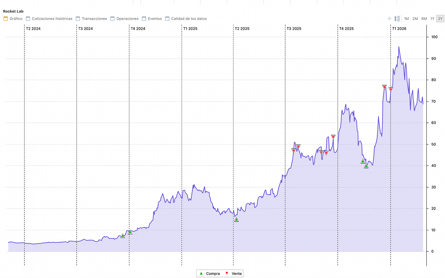 Cuando el mercado baja un -20%, no baja todo igual. Los negocios defensivos caen quizá un 12%. Algunos negocios de calidad caen un 30%, y algunas de tus mejores ideas (derivadas de un sector más castigado o de factores macros como tipos de interés) las que llevas meses o años siguiendo, las que conoces mejor que la mayoría, están al -45%. Aquí me gustaría resaltar lo que comenté antes, no te fijes en el porcentaje, fíjate en la valoración. Rocket Lab, por ejemplo, podría no estar barata aún bajando un 50% desde máximos.